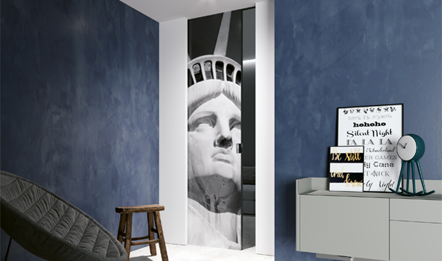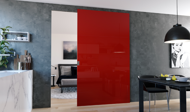 Este sistema permite la total integración de la puerta corredera en la pared.
